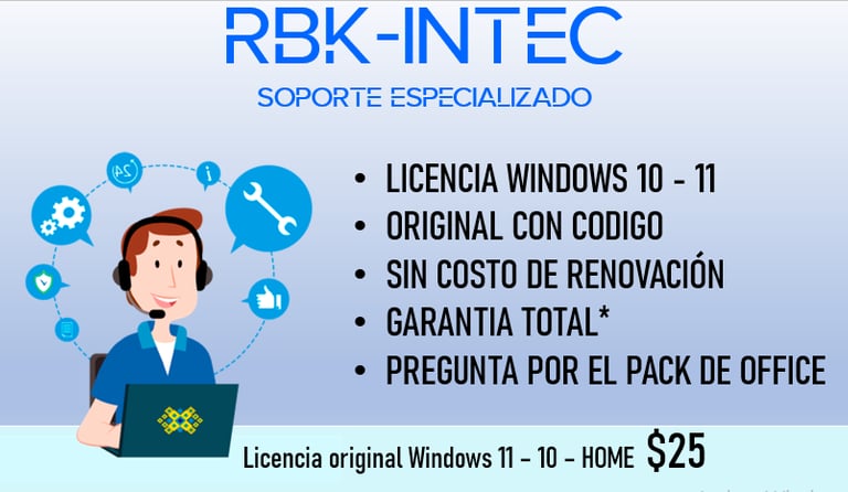 Te ayudamos con el licenciamiento de tu computadora con un codigo digital para tu pc, a un precio increible, ORIGINAL, no uses licencias rack o piratas que expone tu información e inversión.